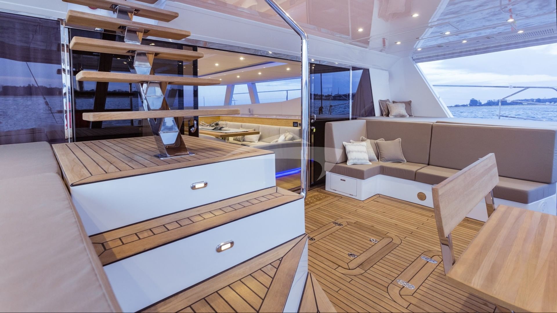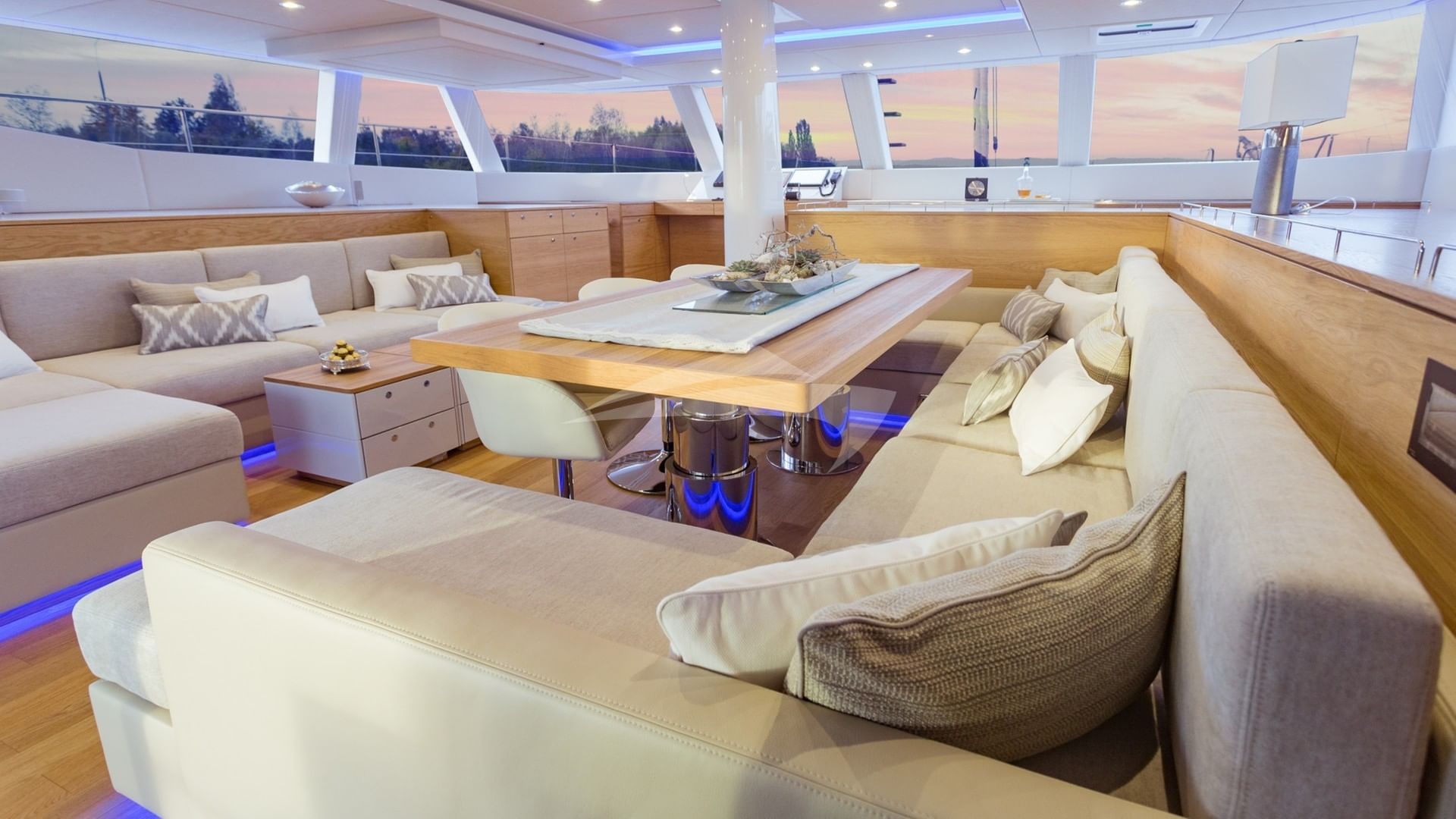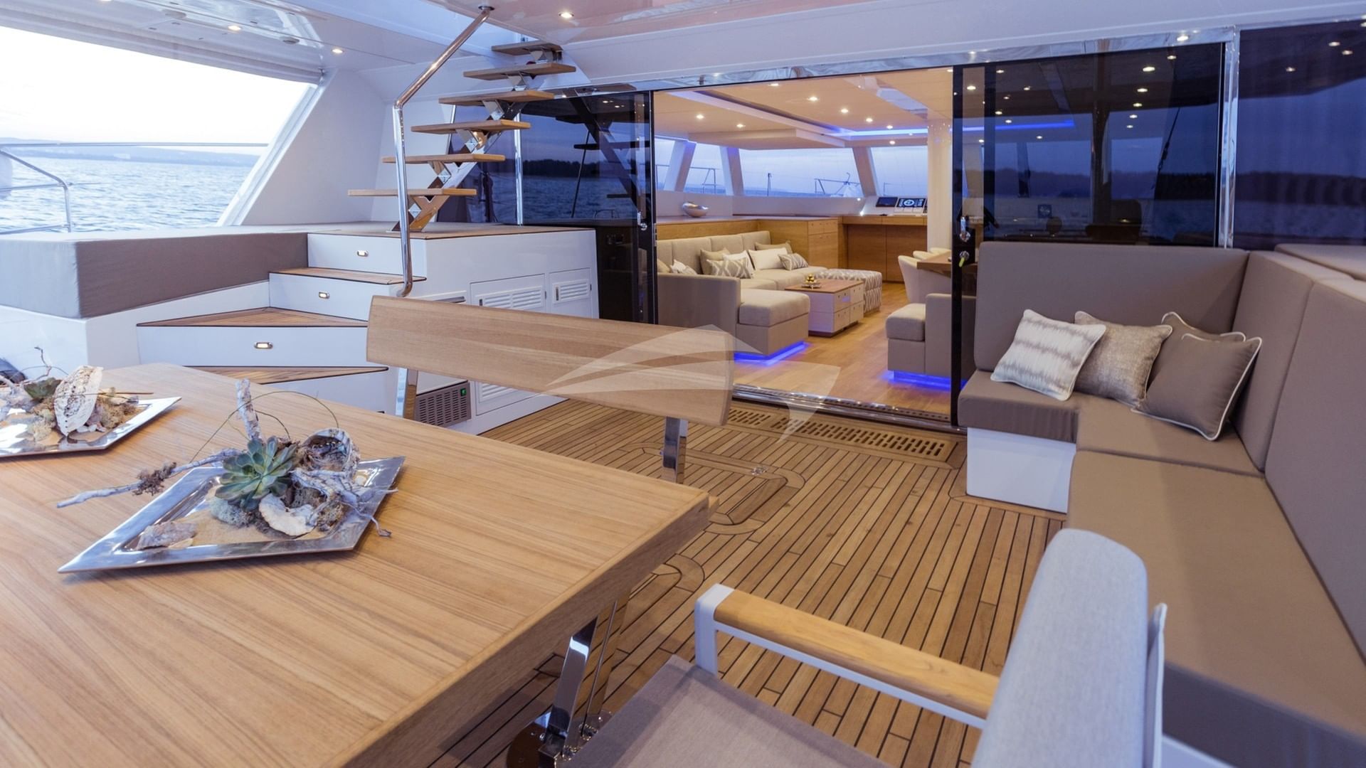 Amenities on board for the charter guests include Jacuzzi on deck, Sun pads, Sun loungers and Swim platform.