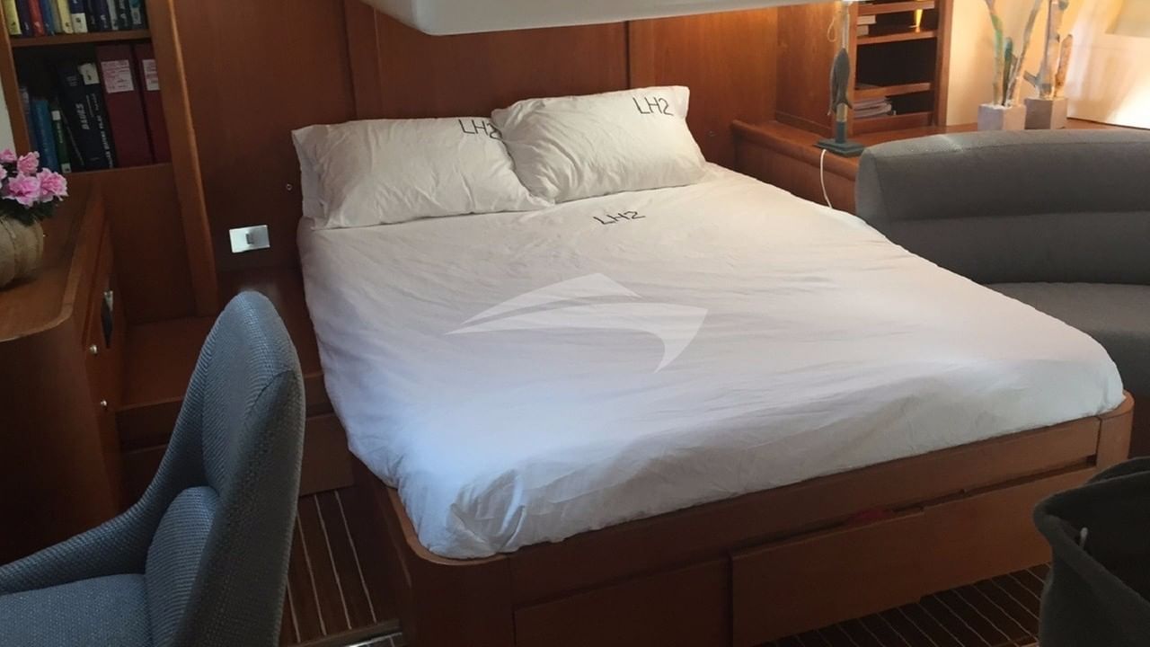 LH2 can accommodate 7 guests in 3 cabins consisting of a primary suite with a double bed and en-suite bathroom facilities, a cabin with a twin bed and en-suite bathroom facilities and a cabin with a twin bed and a pullman bed and en-suite bathroom facilities.