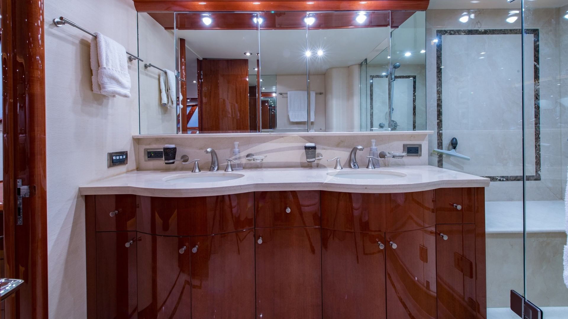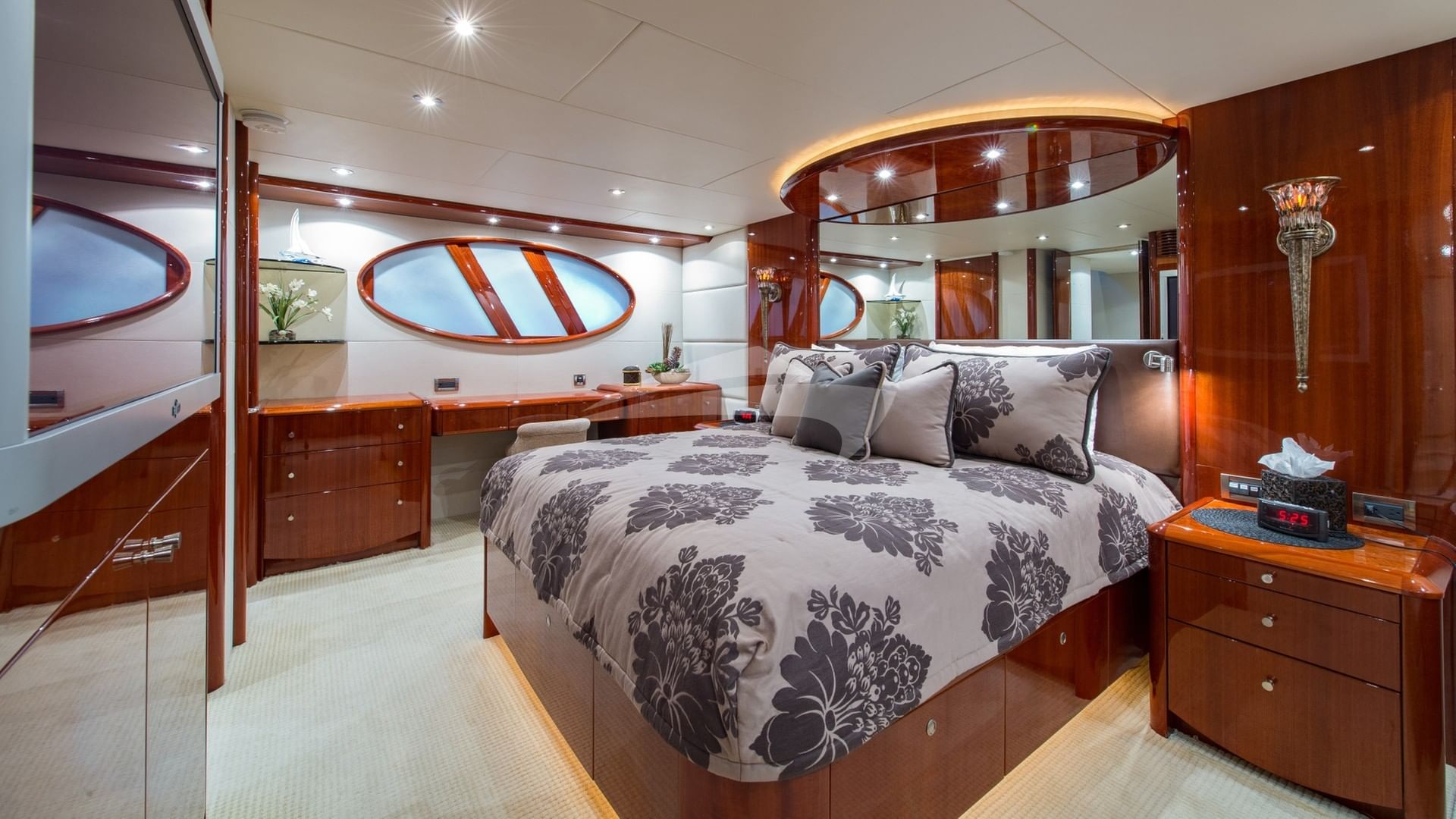 PASTAIO can accommodate 6 guests in 3 cabins consisting of a cabin with a queen size bed and en-suite bathroom facilities, a primary suite with a king size bed and en-suite bathroom facilities located below the aft deck and a VIP suite with a queen size bed and en-suite bathroom facilities.