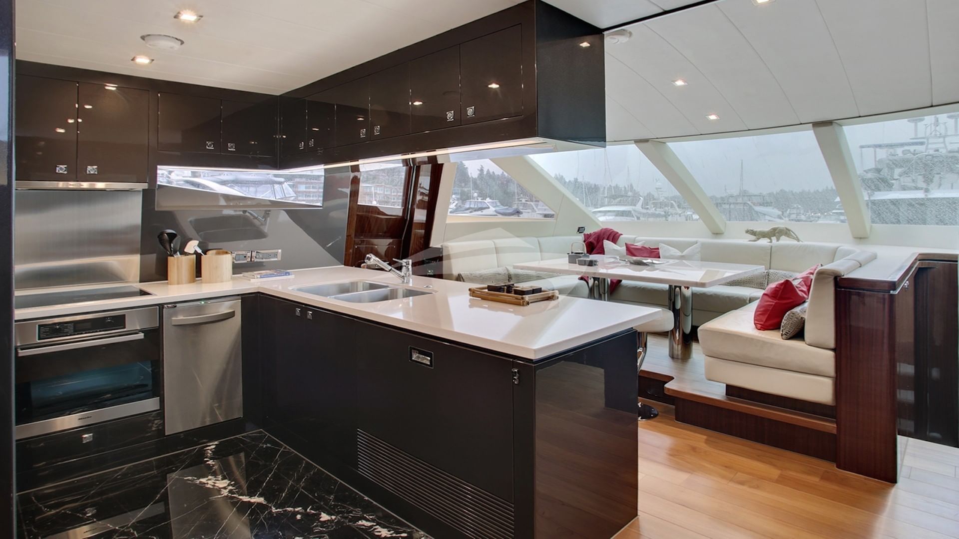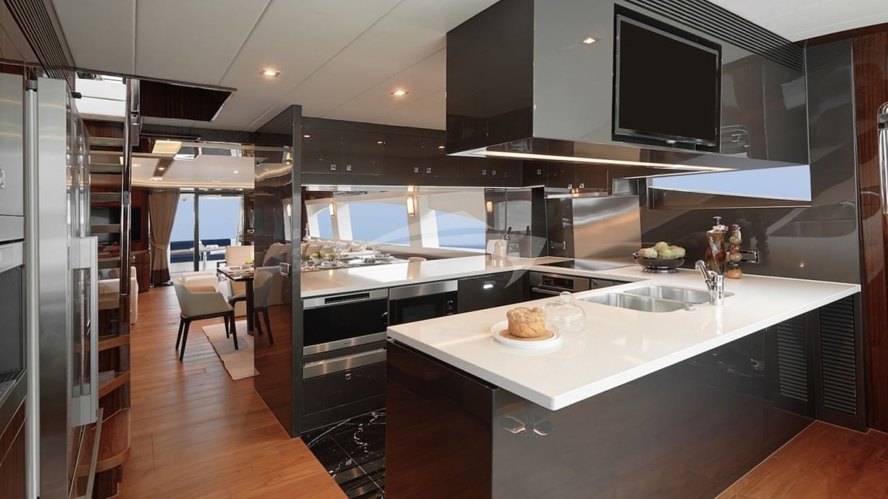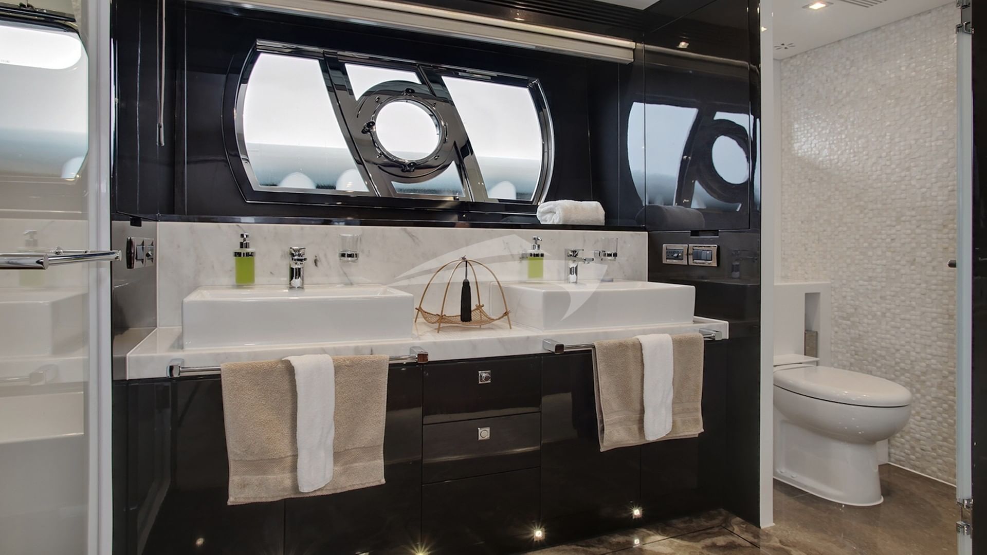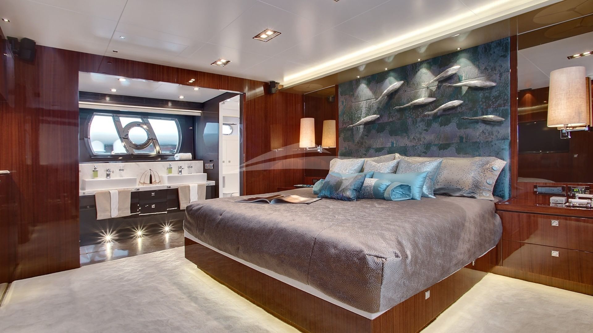 DIAMOND SEAS can accommodate 8 guests in 4 cabins consisting of a VIP suite with a queen size bed and en-suite bathroom facilities, a primary suite with a king size bed and en-suite bathroom facilities, a cabin with a twin bed and en-suite bathroom facilities and a cabin with a queen size bed and en-suite bathroom facilities.