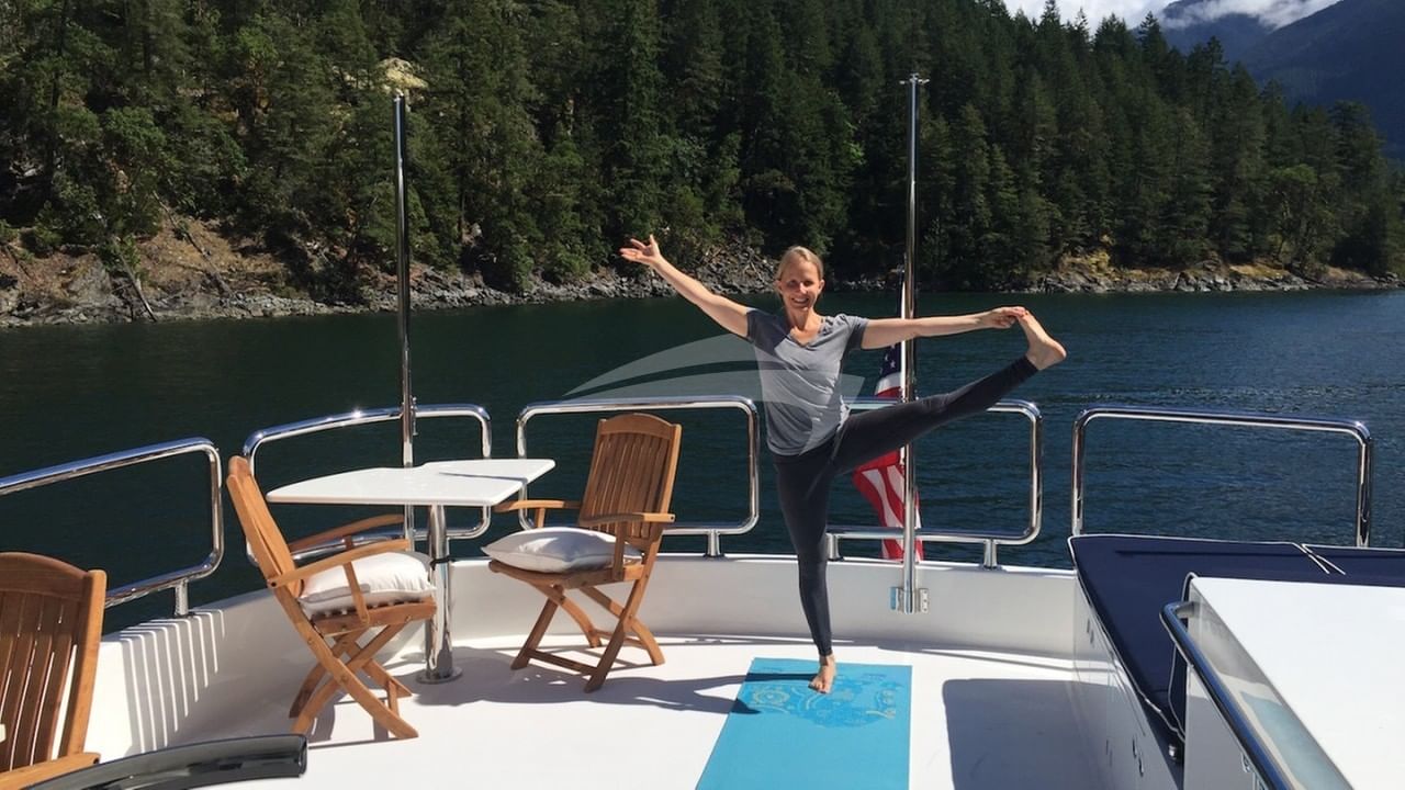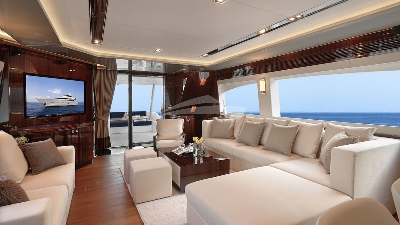 Amenities on board include Air Conditioning, Exercise equipment, Light fishing gear, Gym, Satellite TV, Stabilizers At Anchor and Wi-Fi.