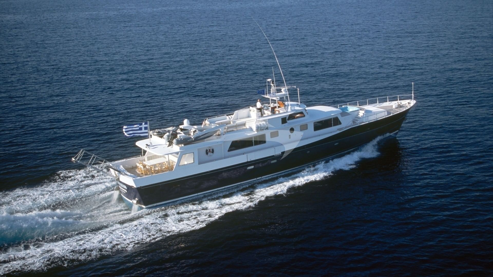 The 108ft / 33m ALAYA has been constructed with a wood hull and is powered by 2x1350 BHP 12V MTU/MB 820 with a cruising speed of 20 knots and a top speed of 27 knots.