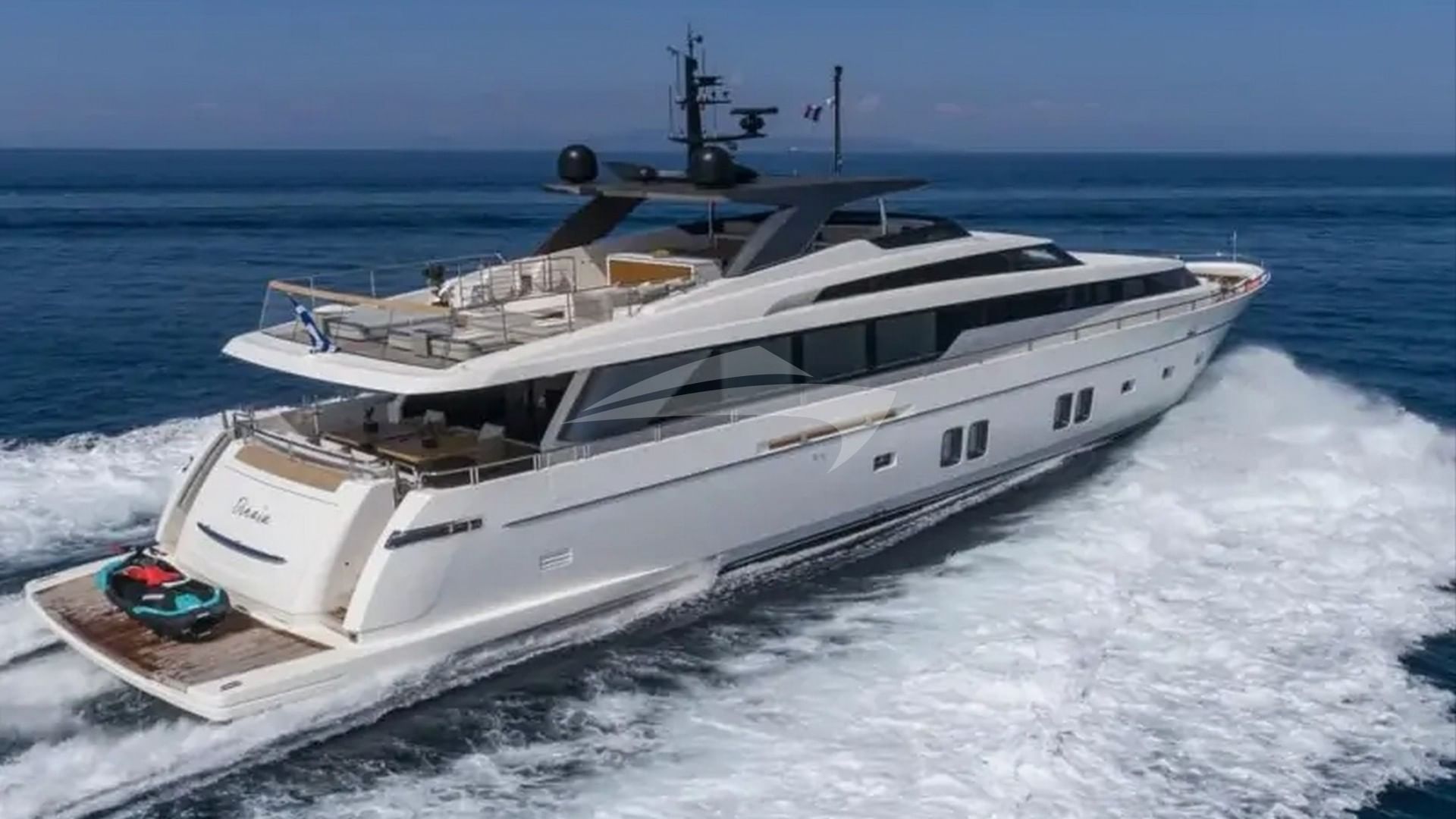 The 105ft / 32m DINAIA has been constructed with a grp hull and is powered by 2x MTU 16V 2000 M93 with a cruising speed of 23 knots and a top speed of 30 knots.