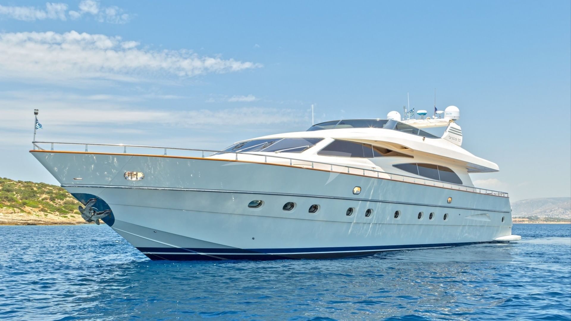 The luxury motor yacht VYNO, previously named BLUE BIRD, was built by Canados and delivered to her owner in 2003, she later underwent a refit in 2019.