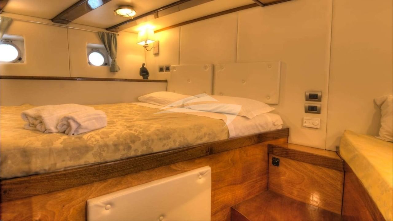 KIMERA can accommodate 8 guests in 4 cabins consisting of a primary suite with a king size bed and en-suite bathroom facilities, 2 cabins with a twin bed and en-suite bathroom facilities and a VIP suite with a double bed and en-suite bathroom facilities.