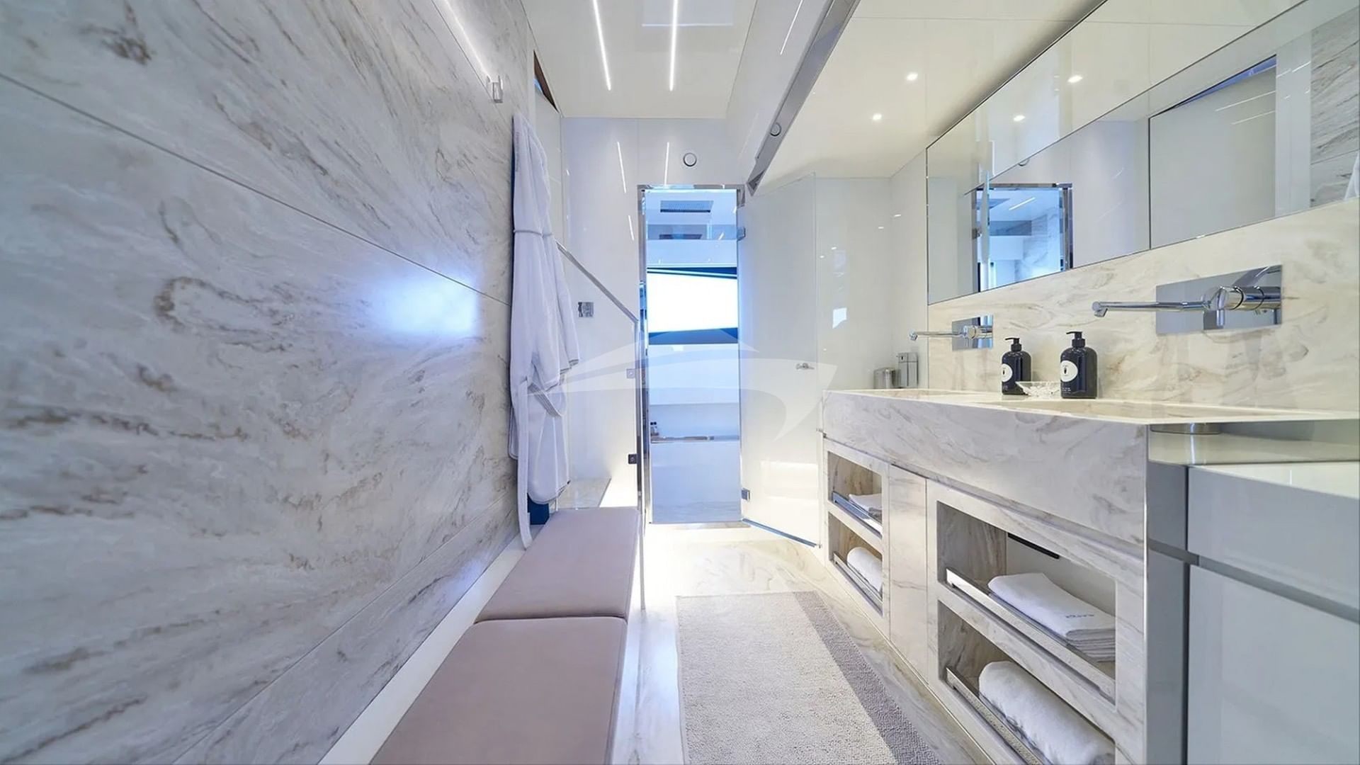 船上为包机客人提供的设施包括空调、海滩俱乐部、户外淋浴、健身器材、健身房、Anchor稳定器、日光浴垫、日光浴躺椅、游泳平台和Wi-Fi。