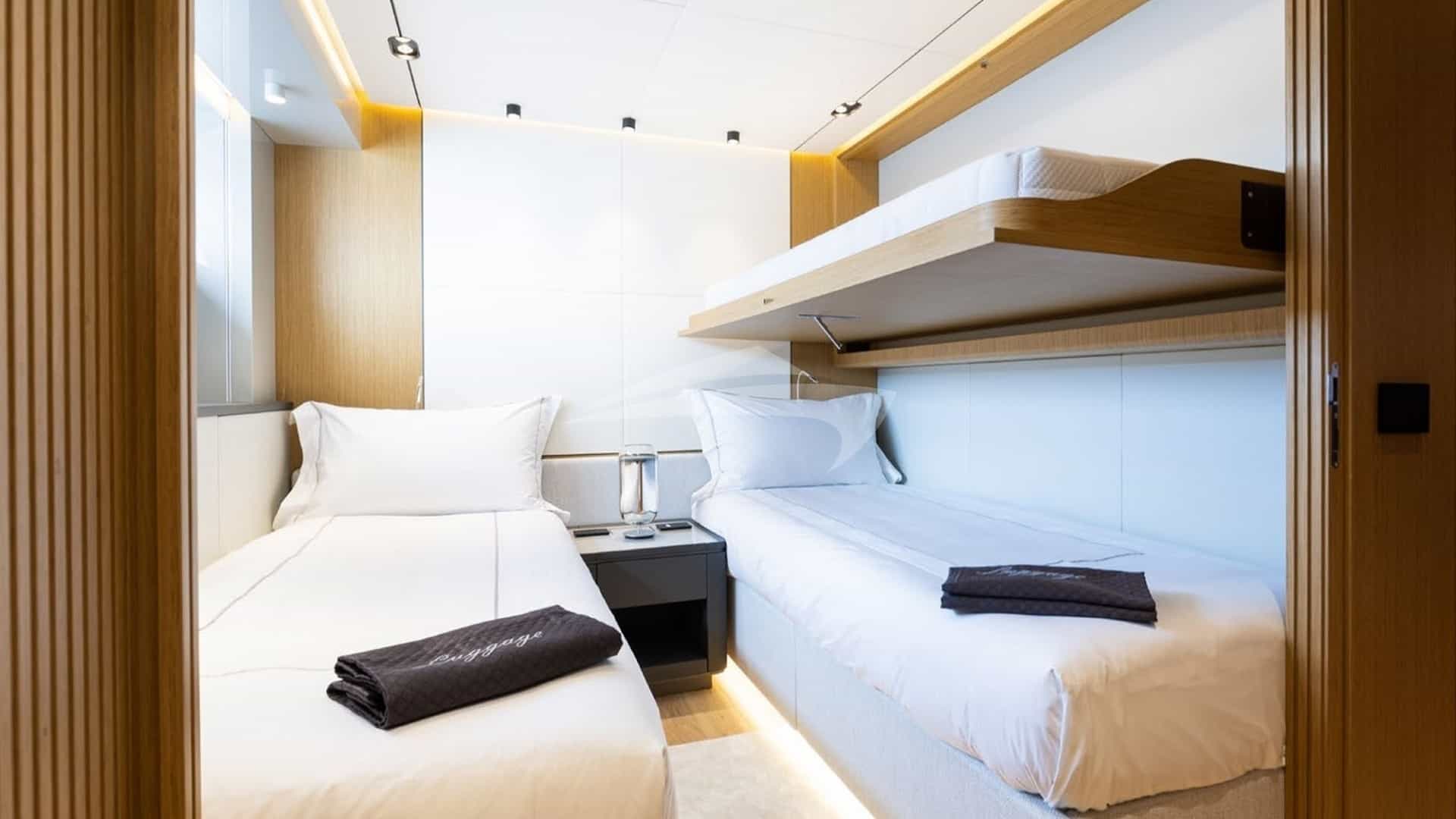 客舱包括一间带一张特大号床和连接浴室设施的主套房、一间配有大号床和连接浴室设施的小屋、一间配有两张单人床和一张铂尔曼床和连接浴室设施的小屋,以及一间带两张单人床和连接浴室设施的小屋。