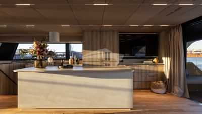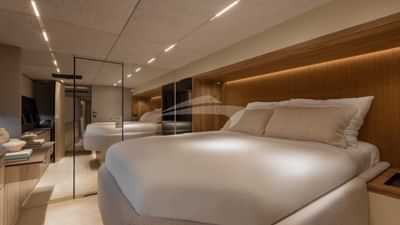 客舱包括一间带双人床和连接浴室设施的主套房、一间带双人床和连接浴室设施的贵宾套房以及 2 间带双人床和连接浴室设施的小屋。