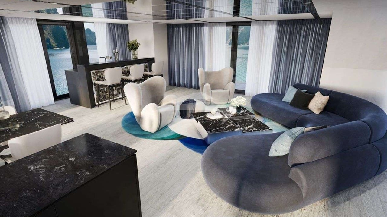 MARIA THERESE 经过精心设计,可在 4 间套房中舒适地容纳多达 8 位包机客人。