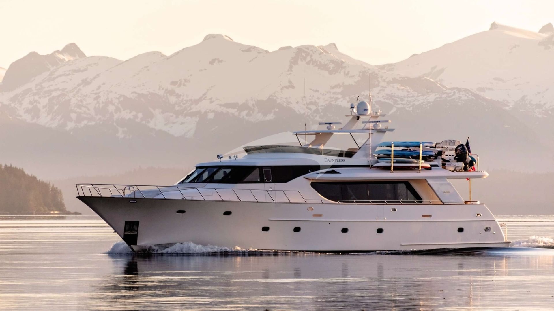 这艘豪华机动游艇 DAUNTLESS,前身为 CONDALORA,由 Custom 建造,并于 2002 年交付给船主。