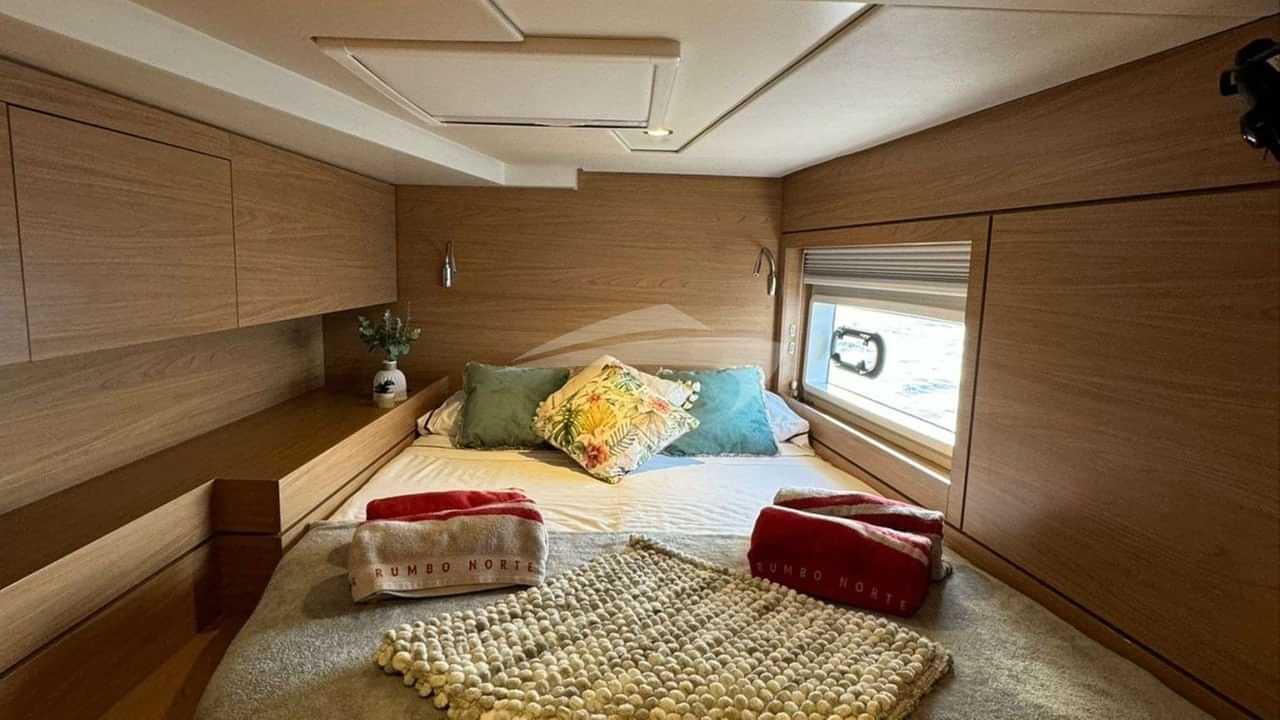 客舱包括一间带大号床和连接浴室设施的主套房、一间带大号床和连接浴室设施的贵宾套房、两间带一张双人床和连接浴室设施的客舱以及一间带两张单人床和连接浴室设施的小屋,以及一间带两张单人床和连接浴室设施的小屋。