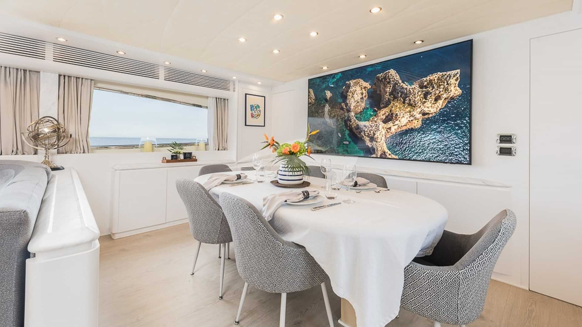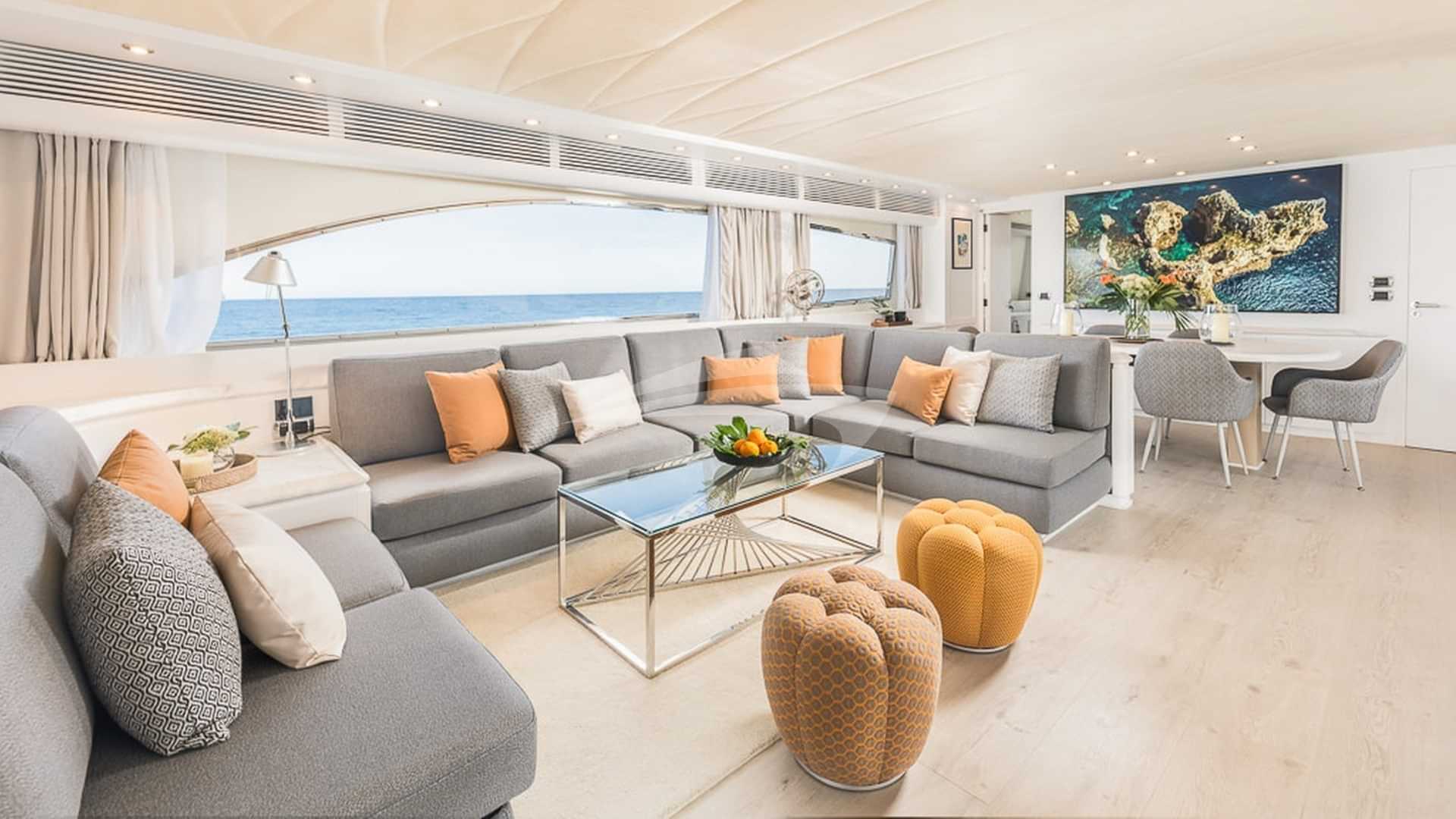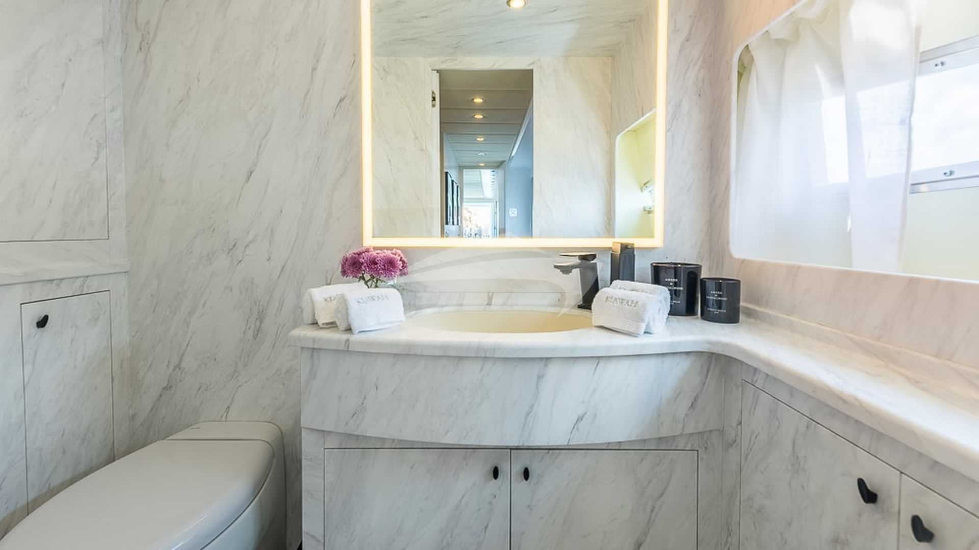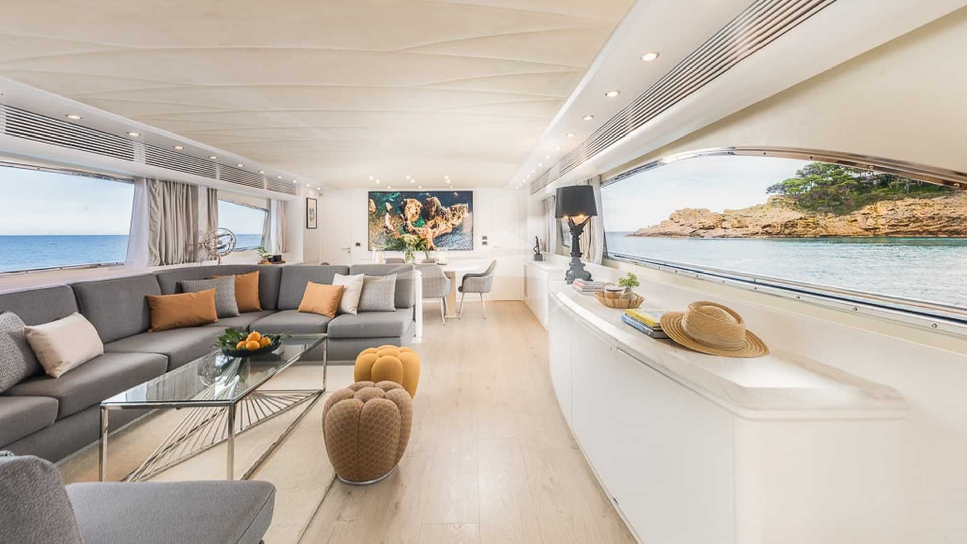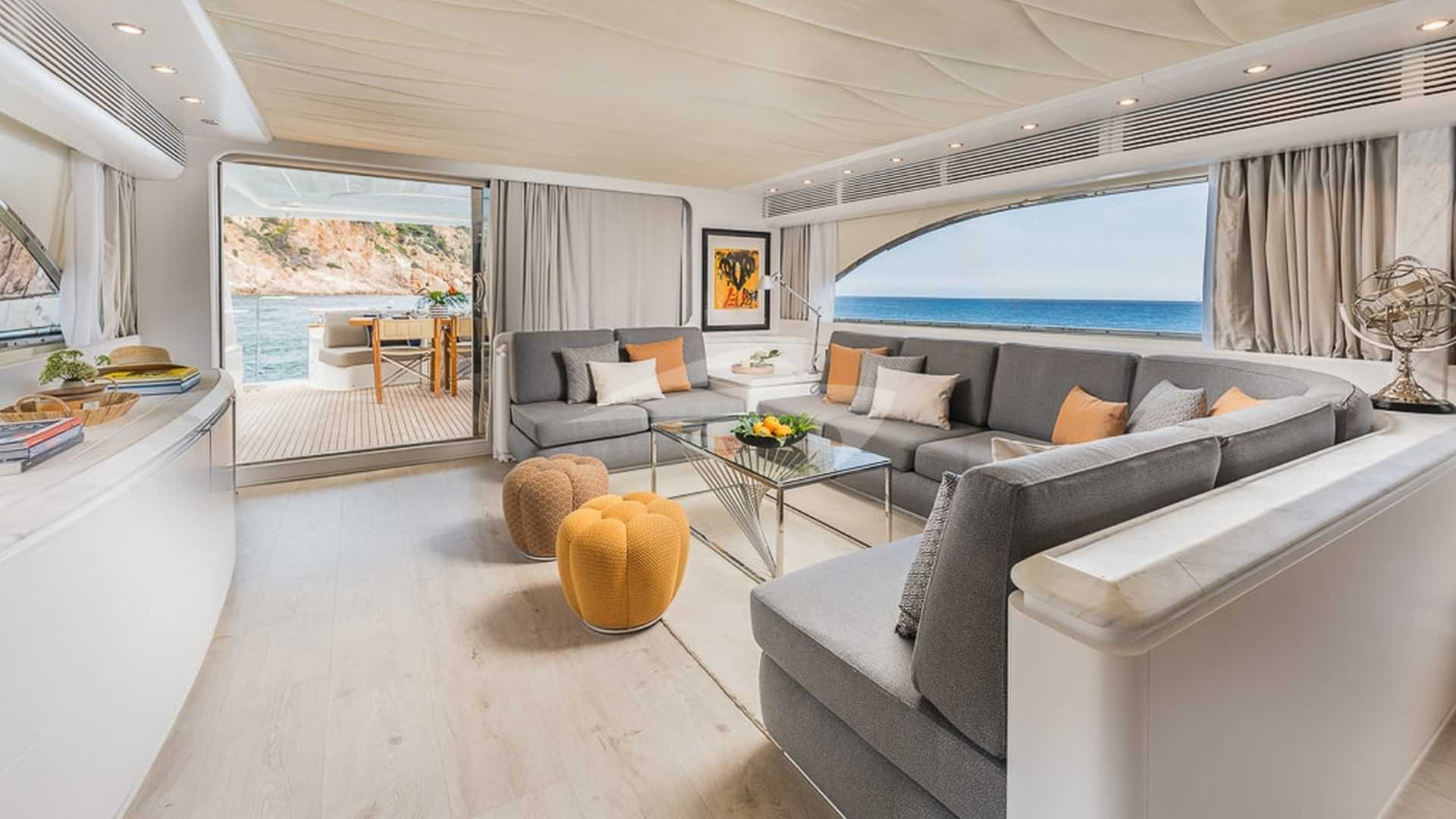 船上为包机客人提供的设施包括空调、烧烤、船首推进器、起重机、户外淋浴、主舱内的按摩浴缸、稳定器、锚稳定器、船尾推进器、太阳垫、日光浴甲板、日光浴躺椅、游泳平台、所有舱室的电视、电视主舱、电视沙龙和无线网络。