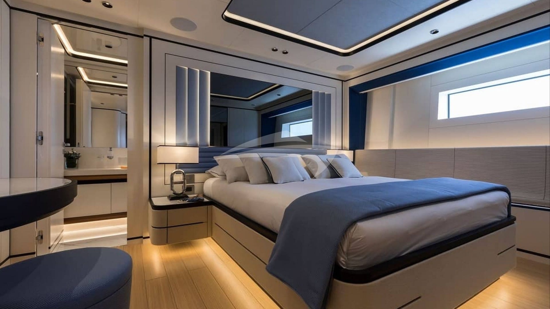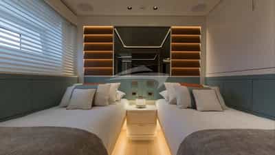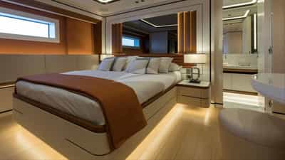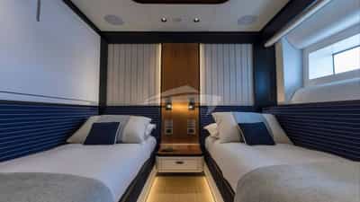 客舱包括一间配有特大号床和连接浴室设施的主套房、3 间带特大号床和连接浴室设施的小木屋以及 2 间带两张单人床和连接浴室设施的小屋。