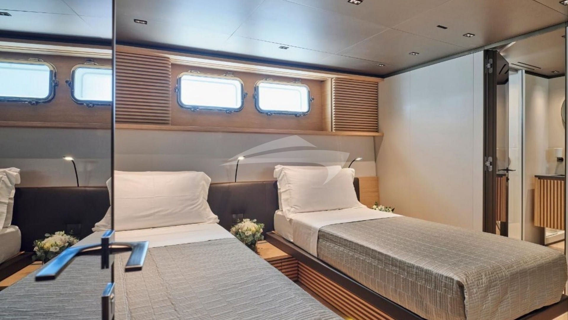客舱包括一间带一张特大号床和连接浴室设施的主套房、一间带一张特大号床和连接浴室设施的贵宾套房、一间配有一张双人床和连接浴室设施的小屋以及一间带两张单人床和连接浴室设施的小屋。