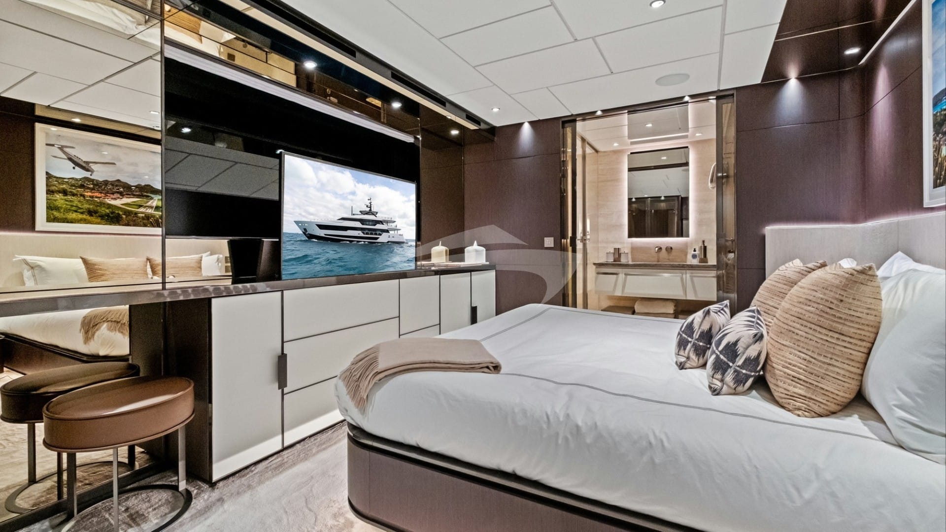 客舱包括一间带一张特大号床和连接浴室设施的主套房、一间带一张特大号床和连接浴室设施的贵宾套房、两间带一张双人床和连接浴室设施的客舱以及一间带两张单人床和连接浴室设施的客舱。