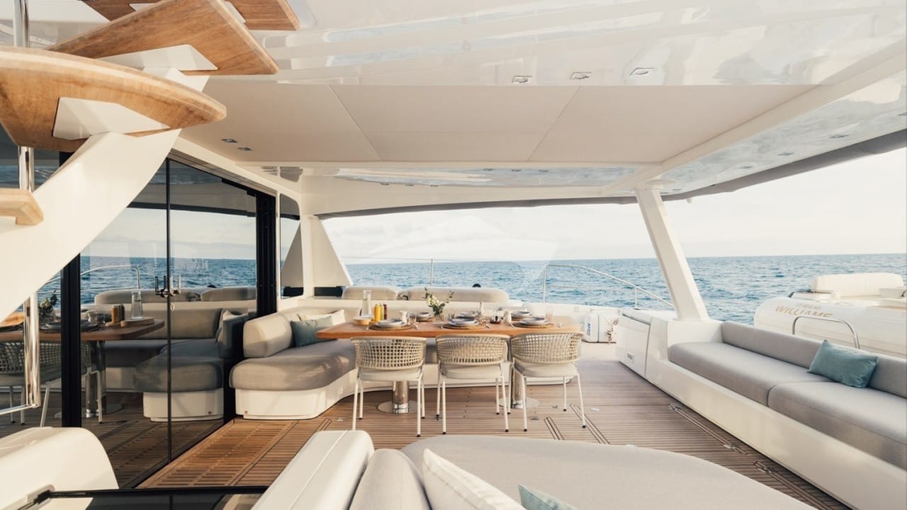 船上为包机客人提供的设施包括空调、咖啡机、户外淋浴、轻型钓鱼装备、前甲板座椅、游戏机、制冰机、室内音响系统、甲板上的按摩浴缸、户外音响系统、遮阳垫、游泳平台、所有舱室的电视、电视沙龙和无线网络。