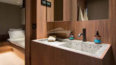 客舱包括一间配有特大号床和连接浴室设施的主套房、一间带特大号床和连接浴室设施的贵宾套房、2 间带一张双人床和连接浴室设施的小木屋以及 2 间带两张单人床和连接浴室设施的小屋。
