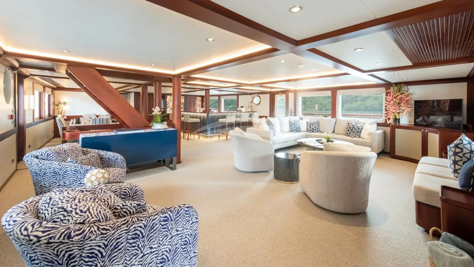 船上为包机客人提供的设施包括空调、电梯、轻型渔具、甲板上的按摩浴缸、卫星电视、稳定器、游泳池和无线网络。