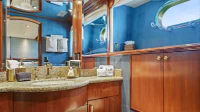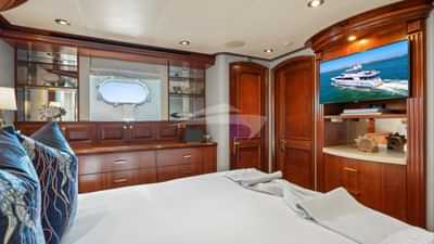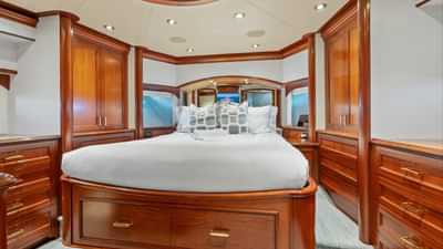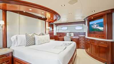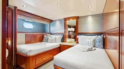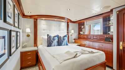 客舱包括一间带一张特大号床和连接浴室设施的主套房、一间带大号床和连接浴室设施的贵宾套房、一间配有大号床和连接浴室设施的小屋以及一间带两张单人床和一张铂尔曼床和连接浴室设施的小屋。