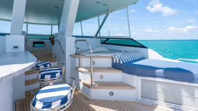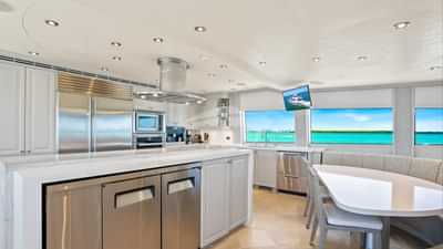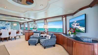 船上为包机客人提供的设施包括空调、烧烤、健身器材、大型钓鱼装备、健身房、室内音响系统、iPod 基座、甲板上的按摩浴缸、户外酒吧、卫星电视、稳定器、锚稳定器、太阳垫、日光浴躺椅、电视沙龙和 Wi-Fi。