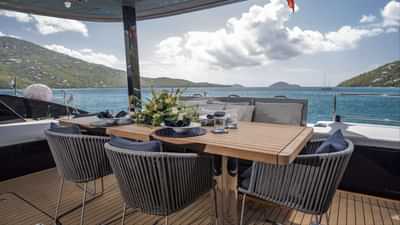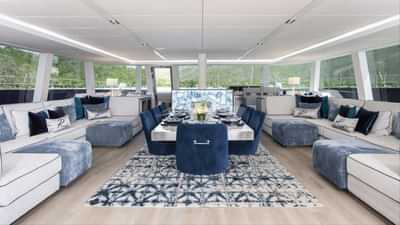 船上为包机客人提供的设施包括空调、烧烤、室外淋浴、室内音响系统、iPod 基座、甲板上的按摩浴缸、电视沙龙和 Wi-Fi。