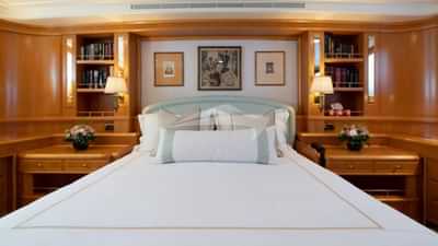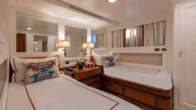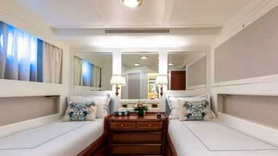 客舱包括一间带一张特大号床和连接浴室设施的主套房、2 间带双人床和连接浴室设施的小屋以及一间带两张单人床和连接浴室设施的小屋。