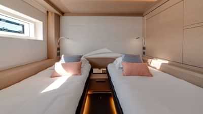 客舱包括一间带大号床的主套房、两间带一张大号床的客舱和一间带一张双人床的小屋。