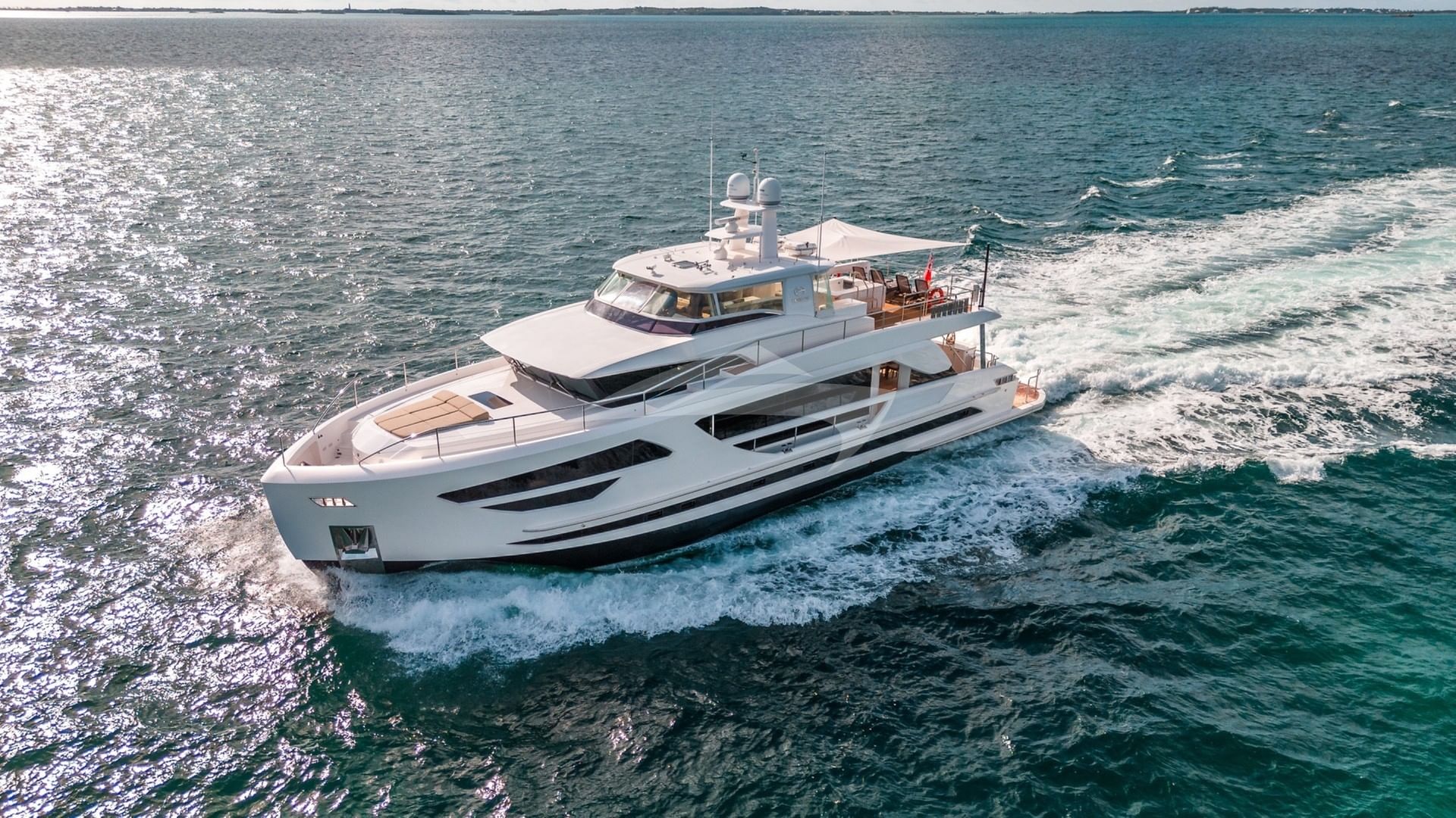 豪华机动游艇午夜 MOON,之前名为 SEAGGLASS 74,由地平线建造,并于 2018 年交付给她的主人。